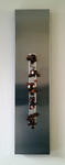 2017Wandpaneel rvs met ijzeren "ring" en bronzen figuur en masker.