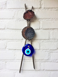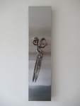 2019Wandpaneel rvs met ijzeren schaar en messing "ogen"