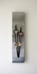 2019Wandpaneel rvs met ijzeren haardtangen en bronzen "vijgenblaadjes"